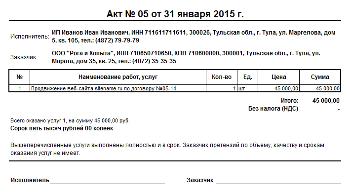 Акты выполненных работ в Казани, Москве, Санкт-Петербурге и других городах России